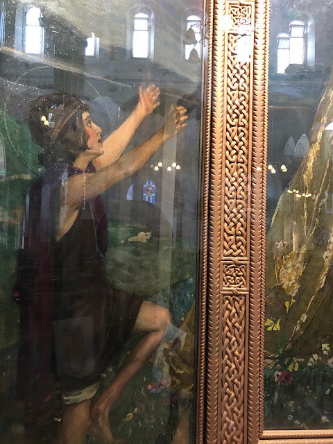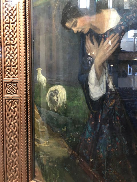 The Punt isn’t the only example of Lady Lavery appearing as allegory. There’s a John Lavery painting of her in Belfast I’ve long wanted to see, and last week I was able to visit. I walked to the church not too far from City Hall. I found the picture, and as usual was left with another mystery.