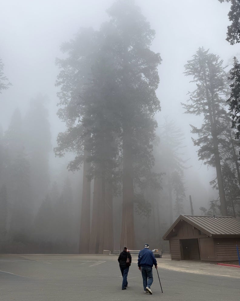The Big Trees are not too far away from my Dad’s house. On that day, the Sierras were in a cloud.