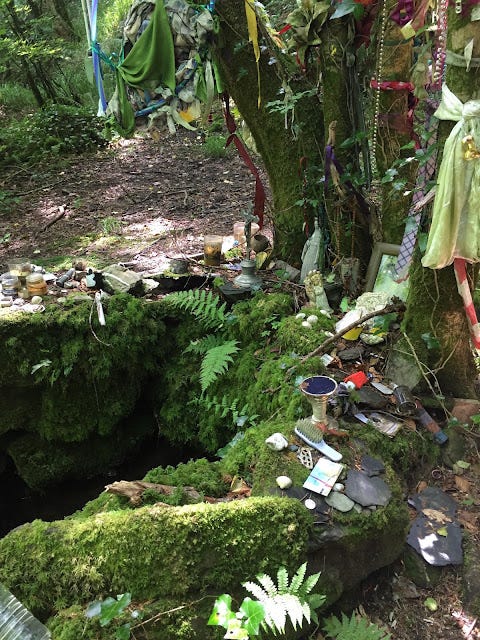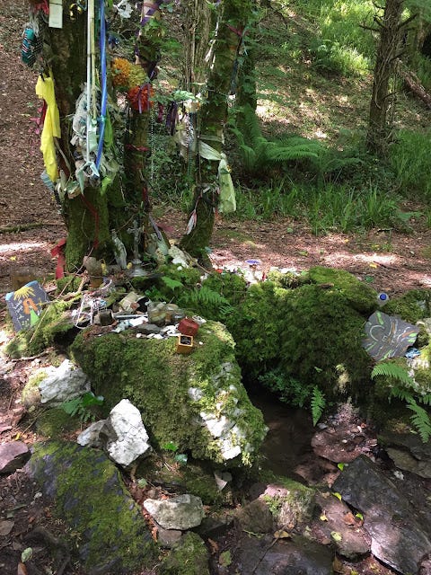 In our day, someone is inspired to paint the word "Bridget" or "Creativity" on a stone and leave it most reverently at the well. And a baggie containing an organic solid. An eye glasses case, with, ew, eye glasses inside. Countless women have generously left their hair tie/ribbon/barrette as a token of devotion.