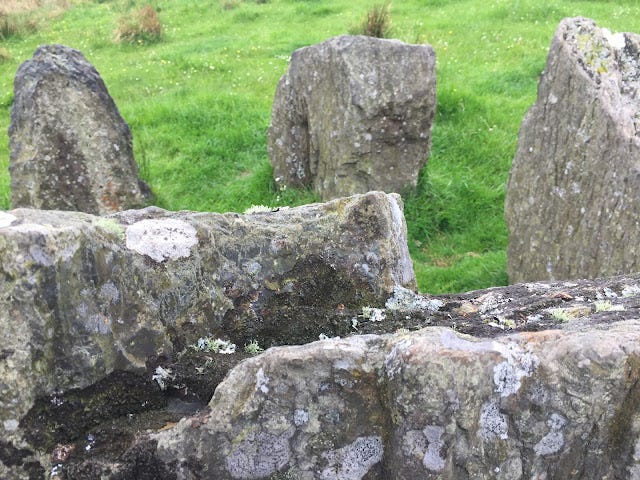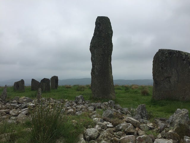 Kealkill Circle, north of Bantry. Sacred Ireland calls this "A magical place," in a book about magical places. So you know it must be magical. Like many of the places in Sacred Ireland, the directions only make sense once you have found the thing. My addendum: keep going up the hill, don't try to walk there, there is only parking for one car.