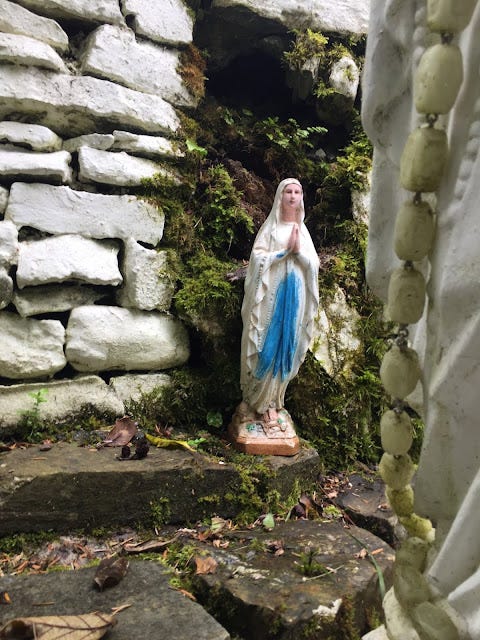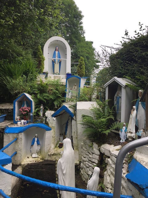 We wondered if all the Mary's were added at the same time, or if someone was offended if someone's newer grotto was added above their own, and does one add her own rosary to the BVM who she loves the most, as how is it that all the roadside wells seem to be painted in the same shade of blue and who coordinates that? Like most of the Irish families I know, there's always room for one more.