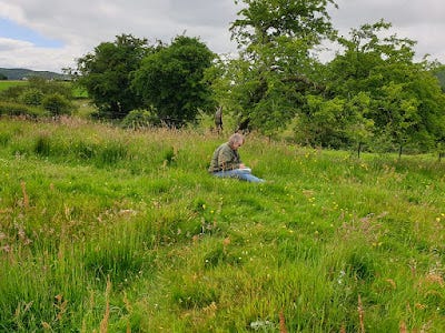 I was laying inside Ballymacdermott court tomb, south of Armagh town. What on earth am I doing in a tomb? What do I imagine I’ll learn?