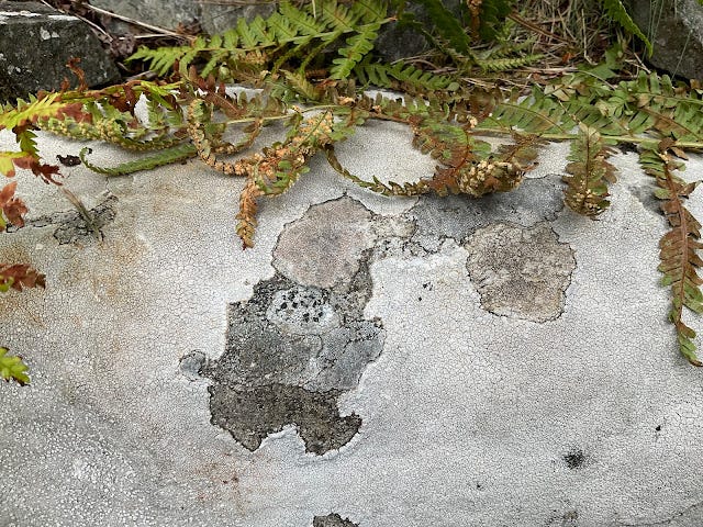 We stayed about twenty minutes, using all our senses to remember these stones and flowers. Then we drove on to the next place on the map.
