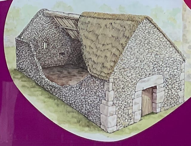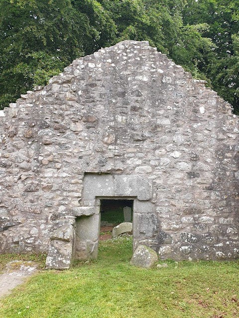 The doorway lintels of the older church resemble lintels on a court cairn.