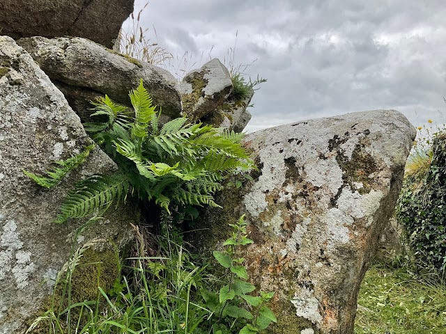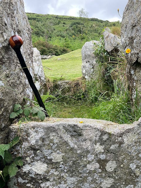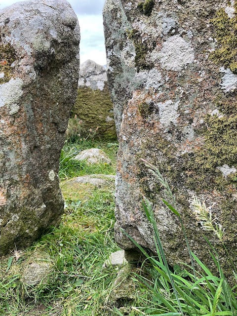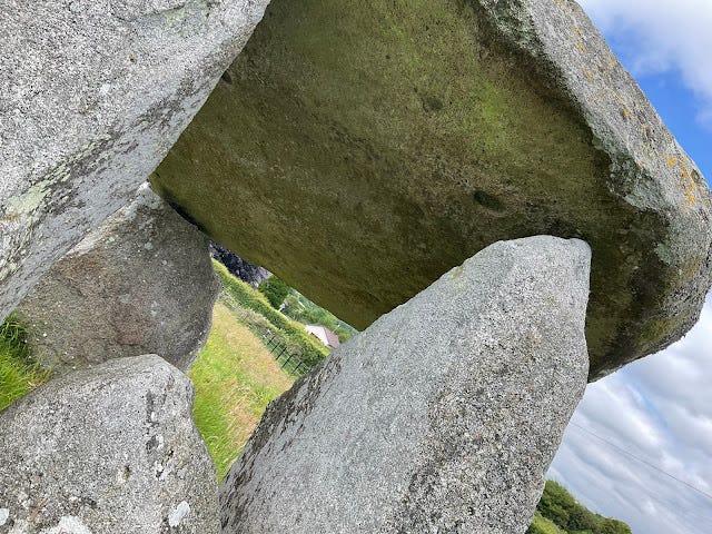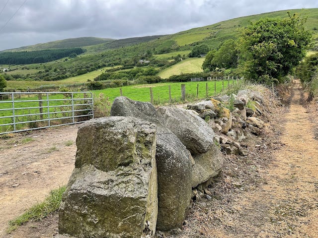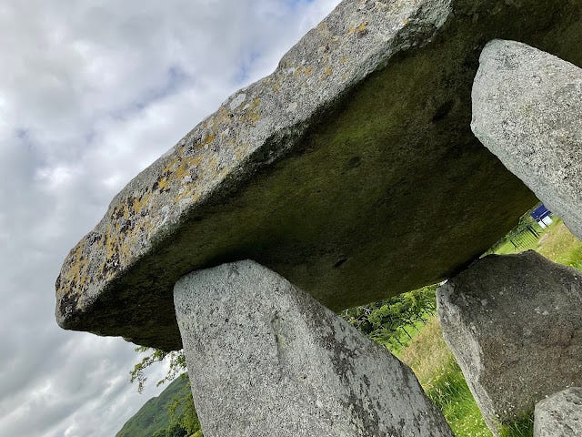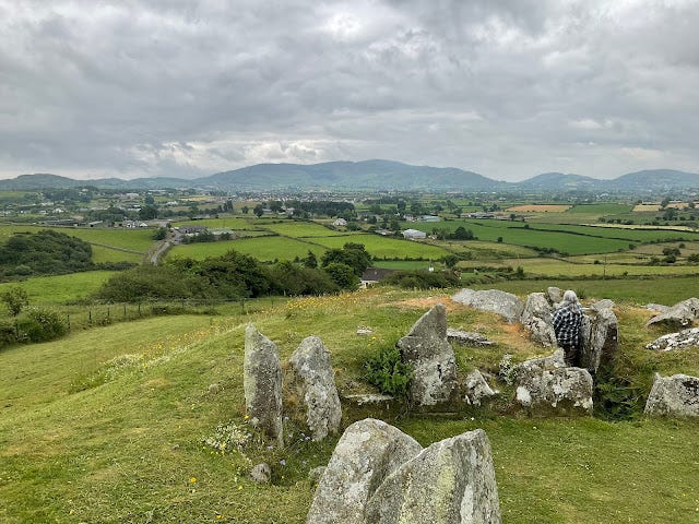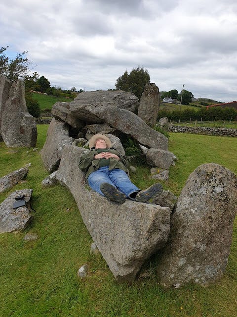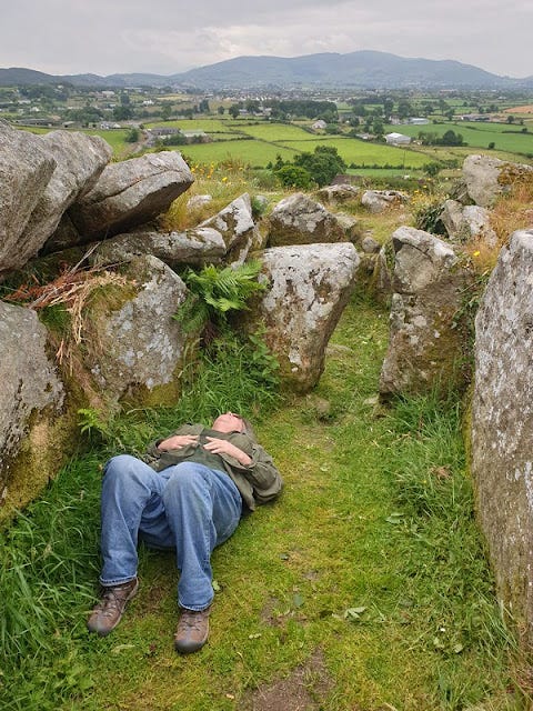 Ballymacdermott court cairn is a holy place. I felt a compulsion to enter it and lay down, so I did. Then got worried. Am I being disrespectful? I don’t think Irish people enter these structures. As far as I know, there are no patterns at cairns. (“The pattern” is the set of prayers and circumambulations at a well or shrine.)