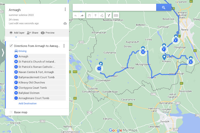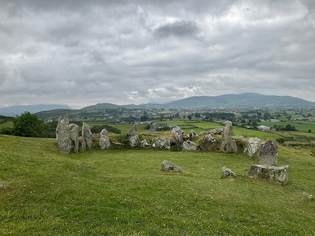When I began this trek I needed to find out why I put myself in a tomb, and wondered if it was even proper to be in it. I figured out that calling it a "tomb" told an old story that doesn't fit new evidence, like 17th-century physics. At Killeavy I listened to an Otherworldly request, and did the right thing moving the little statue. At Clontygora a false border made a mess of our wayfaring, and at Annaghmare I followed my rampant mind and linked new cosmology to ancient folklore.