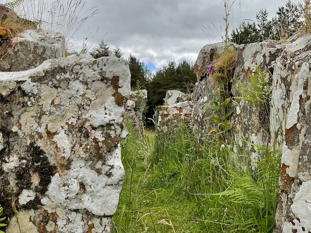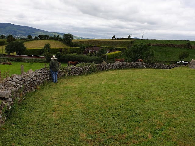 Sacred Ireland says the local name for Clontygora is The Kings Ring. The “ring” of kerbstones have been repurposed into the field walls, like the elements of an exploded star.