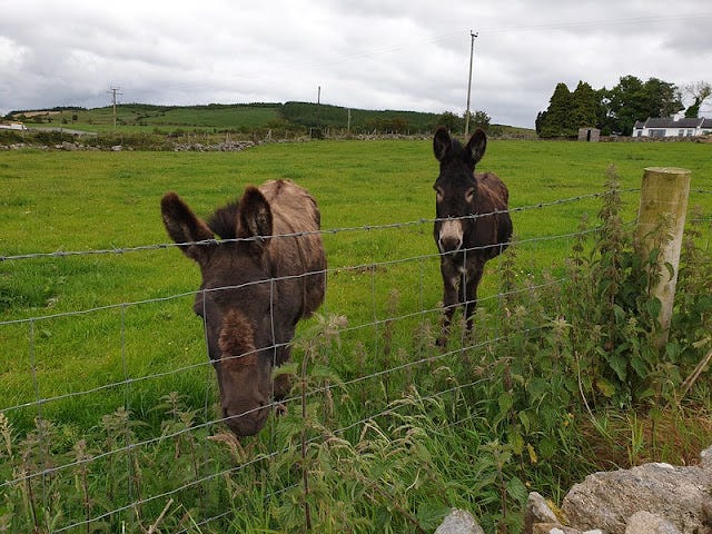 As we drove toward Clontygora court cairn, we crossed The Border several times. Mobile phone roaming of +353 in the UK is supposed to “just work” but it doesn’t. Our phones got confused and road signs lost all correspondence to frozen maps. I even lost my usually reliable sense of direction.