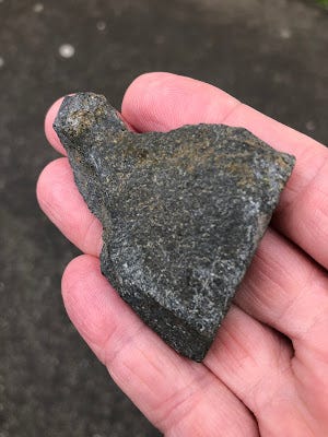 I looked around for a stone to remember this place by. (I have a huge collection and remember nothing about them.) I circumambulated the shrine, and as I came around to the front, saw this stone in the corner, as if it was adoring the virgin.