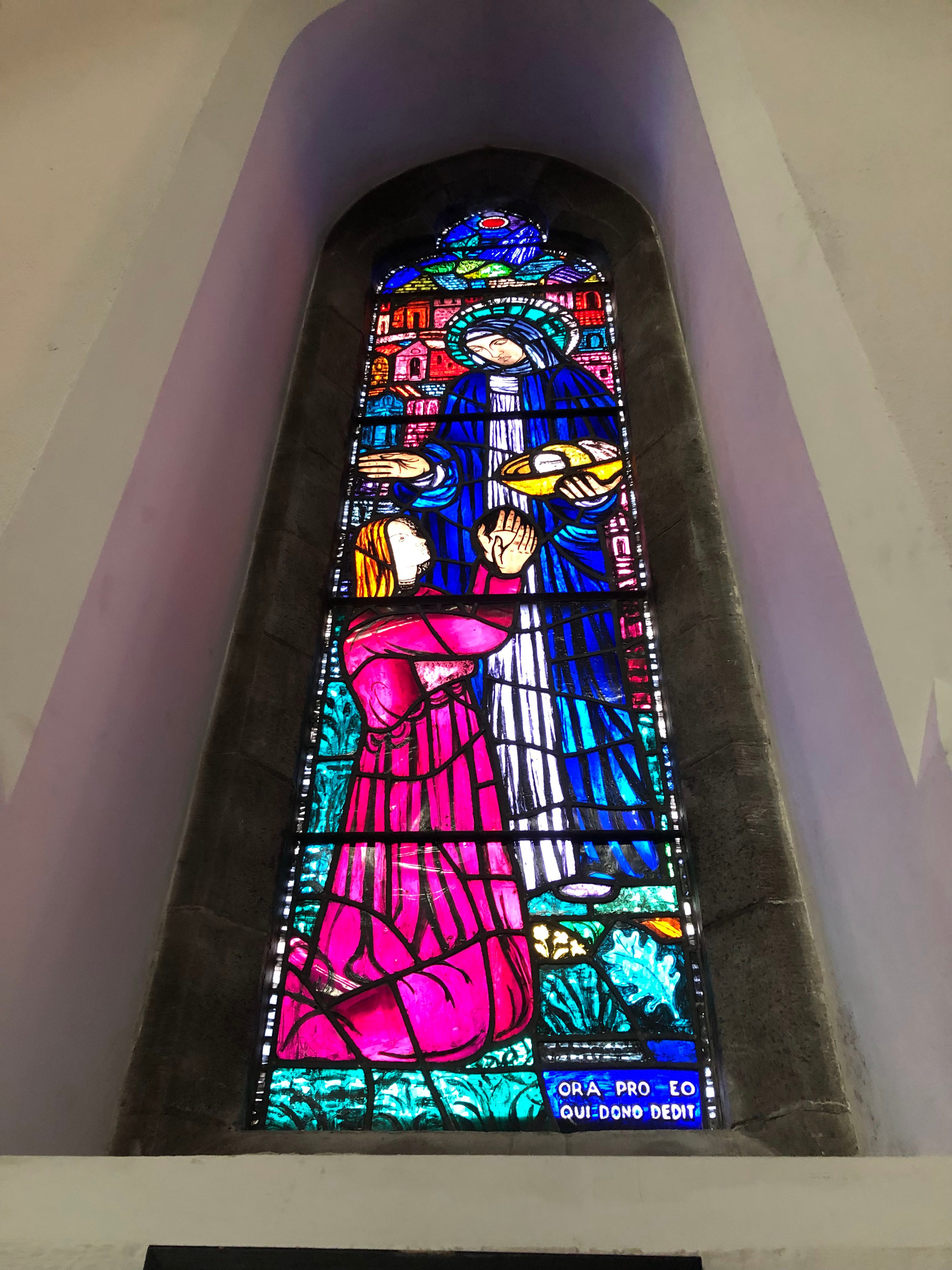 A few miles away is Lough Rea, where we went to see the windows of St. Brendan's Cathedral. The church commemorates the 6th century founder of a church and university on the site. This he did after he discovered America.