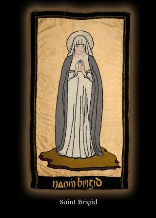 According to "Pamela Colman Smith and the Yeats Family," (Joan Coldwell, Canadian Journal of Irish Studies Nov 1977) Colman Smith contributed a design of St. Brigid to art collective that created these Sodality Banners.
