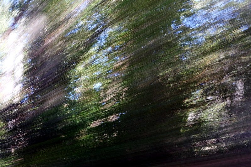 In the opening scenes of A Circle Outside two women who have just met talk about their childhoods as they drive through the redwoods. You can get a sense of Empire Grade in this 2020 video by a motorcyclist riding down from near the location of the fictional women’s land, Ove. (Trust me, turn the sound off.)