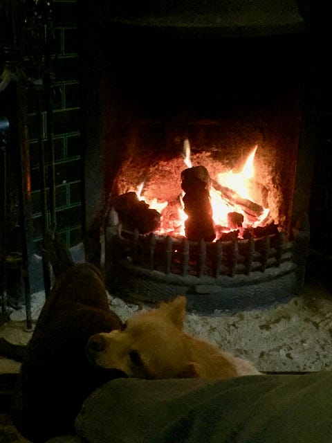 The rule’s one exception is Hallowe’en night, where everyone banks their home fire and gathers together at one fireside. No one sleeps that long night, and we burn fuel from our own houses in the one fire together. And while we stay at the fire, singing and feasting, our beloved dead might join us, for on that night, they come back to us to comfort with memory.