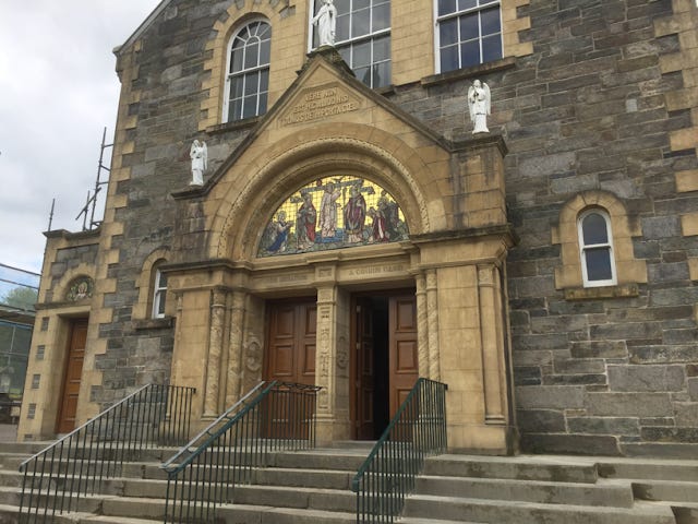 I picked up Pippin and we went inside. Gleann pointed out the Station of the Cross (Jesus Falls The Second Time) where Grandpa Joe met his friend Maeve who lives in Pump street.