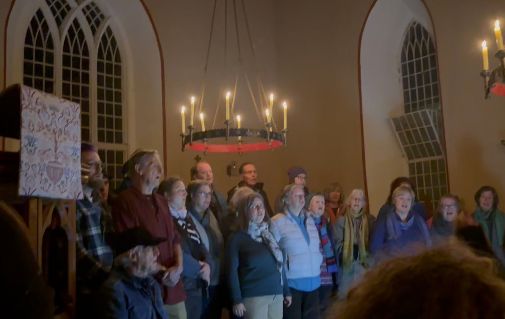It’s a perfect atmosphere for singing, though everyone is wearing coats.