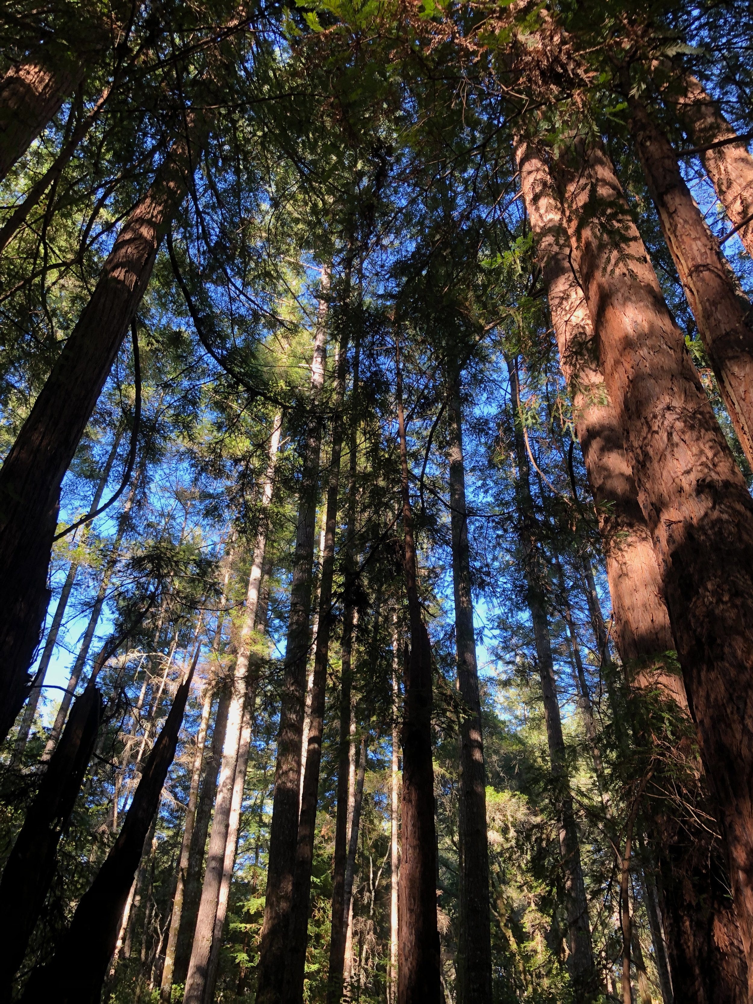 Several important scenes in A Circle Outside take place while the characters are looking up at redwood trees. When a redwood forest is logged, like the forests of Santa Cruz County were in 19th century, slender trees grow in rings around the stump. Often the stump rots away, leaving an open circle in the center.