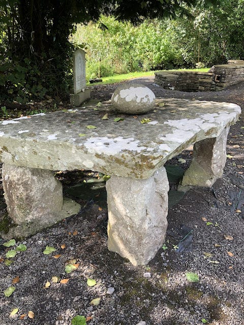The top of the altar is pitted as if covered in Neolithic cup marks, and I’ve read that the stone probably once covered a neolithic grave.