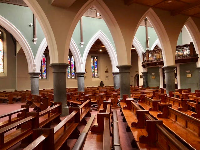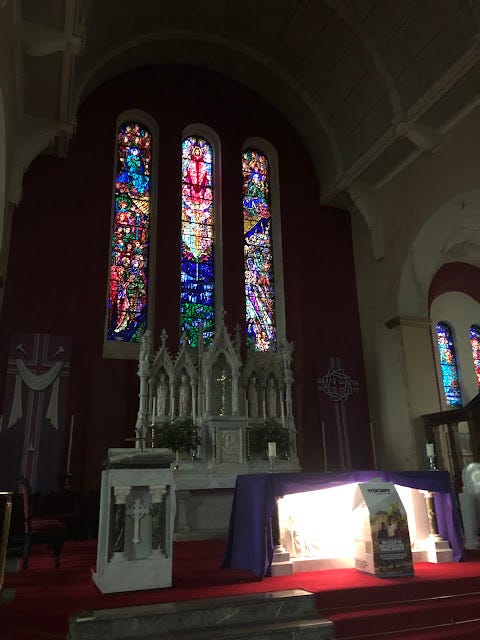 Ballinrobe’s modest church contains a sublime art experience worthy of coach tours and shuttle buses from a car park at the edge of town. Lucky for us, and for the solace of the people of Ballinrobe, it’s open all day, quiet, and free of charge.
