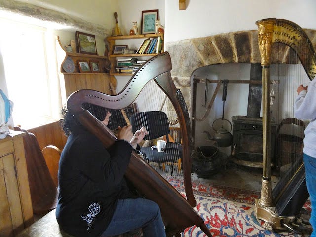 Others wanted to hear John’s partner Claire Roche play the harp and sing old songs.