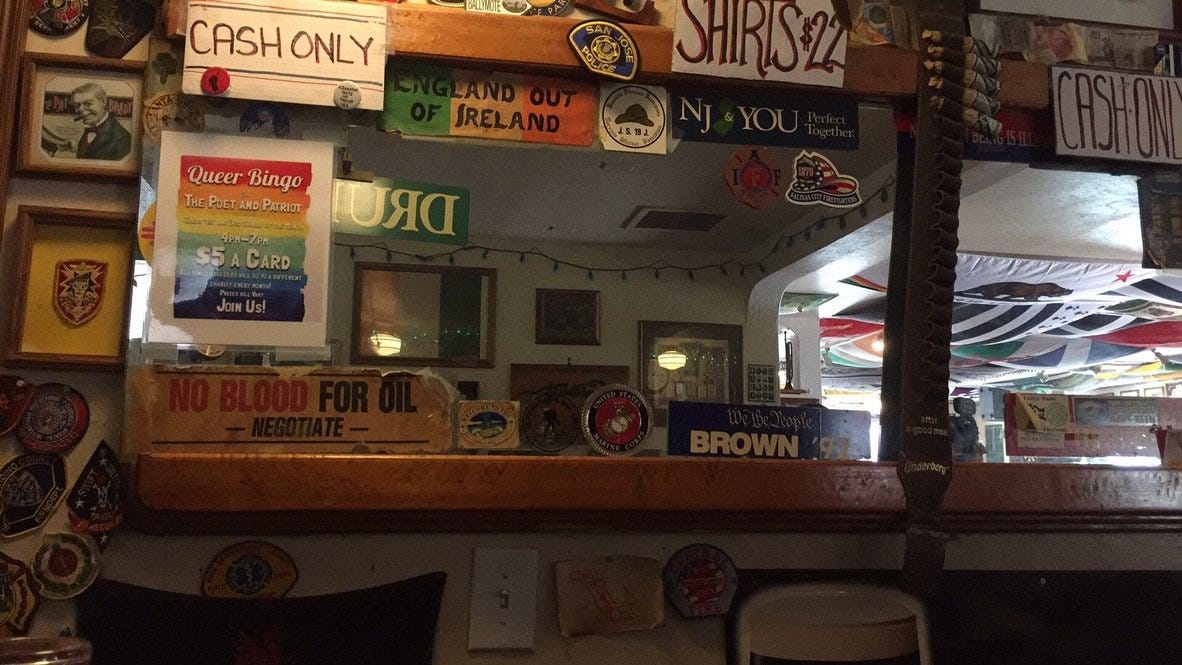 The Poet and Patriot was an Irish pub, pouring its warm Guinness in welcome to locals and immigrants and outcasts of all kinds. Santa Cruz didn’t have a lesbian bar, and many dykes preferred the Poet’s quiet tables to the Blue Lagoon’s disco around the corner. The Poet brandished a unique odor that had taken root under the carpet and never perished.