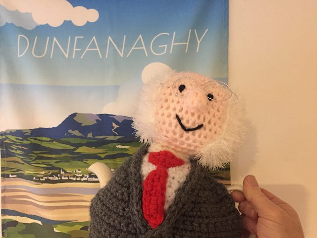 The current President, Michael D. Higgins is easily charactured, as depicted in the tea cozy at the top of this post.