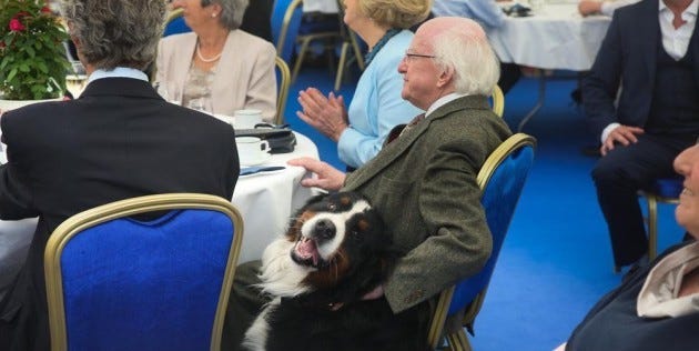 He is old, short, round and very popular. Beyond his political life, he’s a poet who loves his dogs. Similar to Robinson and McAleese, he sees the office as “an independent space where new ideas and possibilities emerge.”